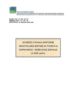 IZVJEŠĆE O STANJU ZAŠTIĆENE GRADITELJSKE BAŠTINE NA PODRUČJU KKŽ 2008. god